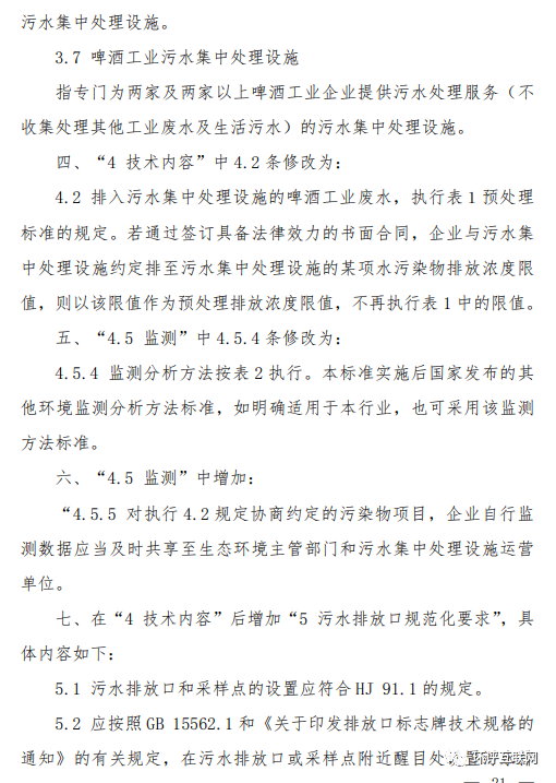 八、《啤酒工業污染物排放標準》(GB 19821-2005)修改單