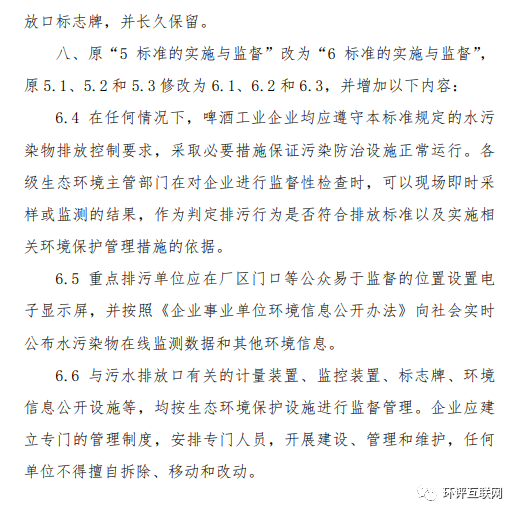 6.《發酵酒精和白酒工業水污染物排放標準》(GB 27631-2011)修改單