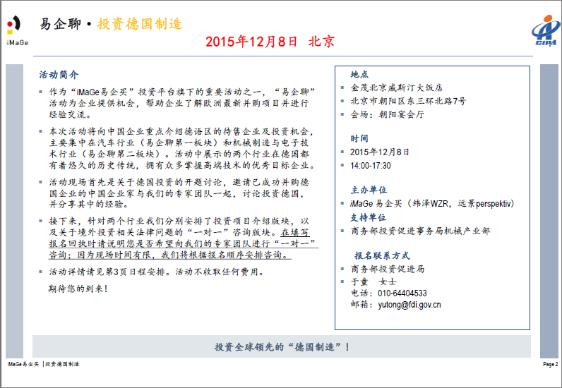 歡迎參加12月8日北京-投資德國制造項目宣講會