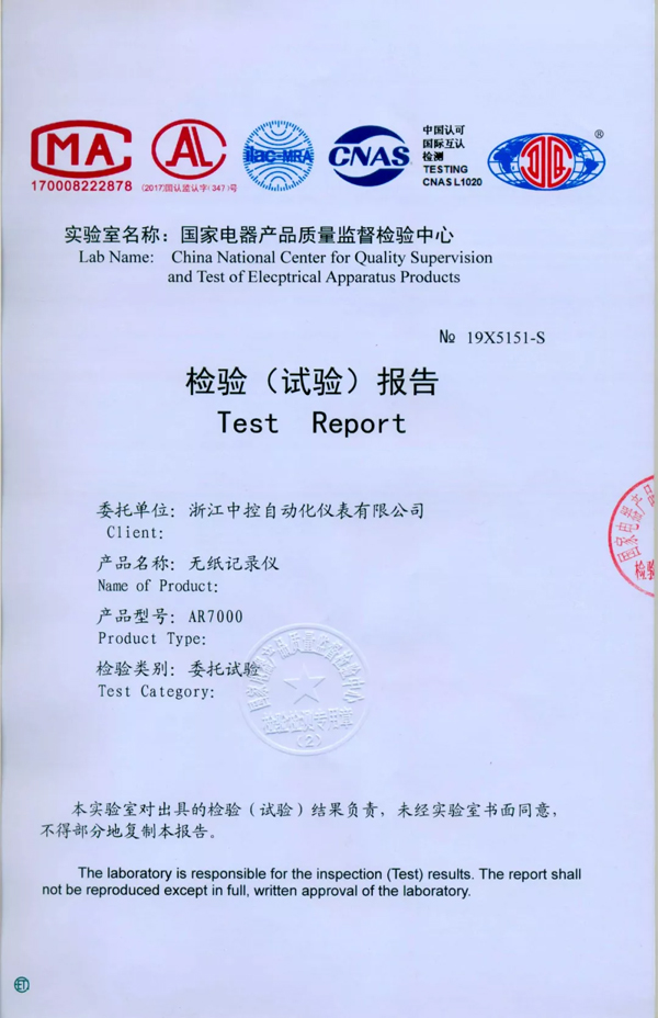在整個試驗過程中,中控AR7000系列無紙記錄儀全程保持正常運行,數(shù)據(jù)記錄連續(xù)完整,實現(xiàn)了核電標準EMC鑒定試驗的一次性通過,并出具了正式檢驗報告。
