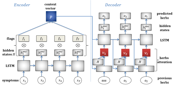 在題為AttentiveHerb: A Novel Method for Traditional Medicine Prescription Generation的研究論文中,沈陽自動化所大數據智能技術組提出了一種基于深度學習技術的智能中醫藥方生成方法。該方法基于中醫診療過程的核心思想——“辨證論治”,利用深度循環神經網絡對患者的癥狀信息進行特征提取,并在考慮患者不同病癥嚴重性程度的基礎上,針對不同癥狀動態生成藥方中的每一味對癥中藥,實現智能中醫自動化診療,并成功模擬中醫個性化診療這一特點。此外,相較于之前的智能中醫研究,該方法完全基于學習方法,無需事先人為設計任何規則,表現出良好的自適應性。該工作不僅是智能中醫研究中的新探索和突破,也為未來應用人工智能技術在門診診療的研究提供了研究思路。