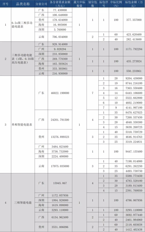 在南方電網(wǎng)公司2019年計(jì)量產(chǎn)品(電能表)第一批框架招標(biāo)項(xiàng)目中林洋能源成為中標(biāo)人之一,共中2個(gè)包,分別為單相智能電能表和三相智能電能表,中標(biāo)總金額約6582萬(wàn)元。