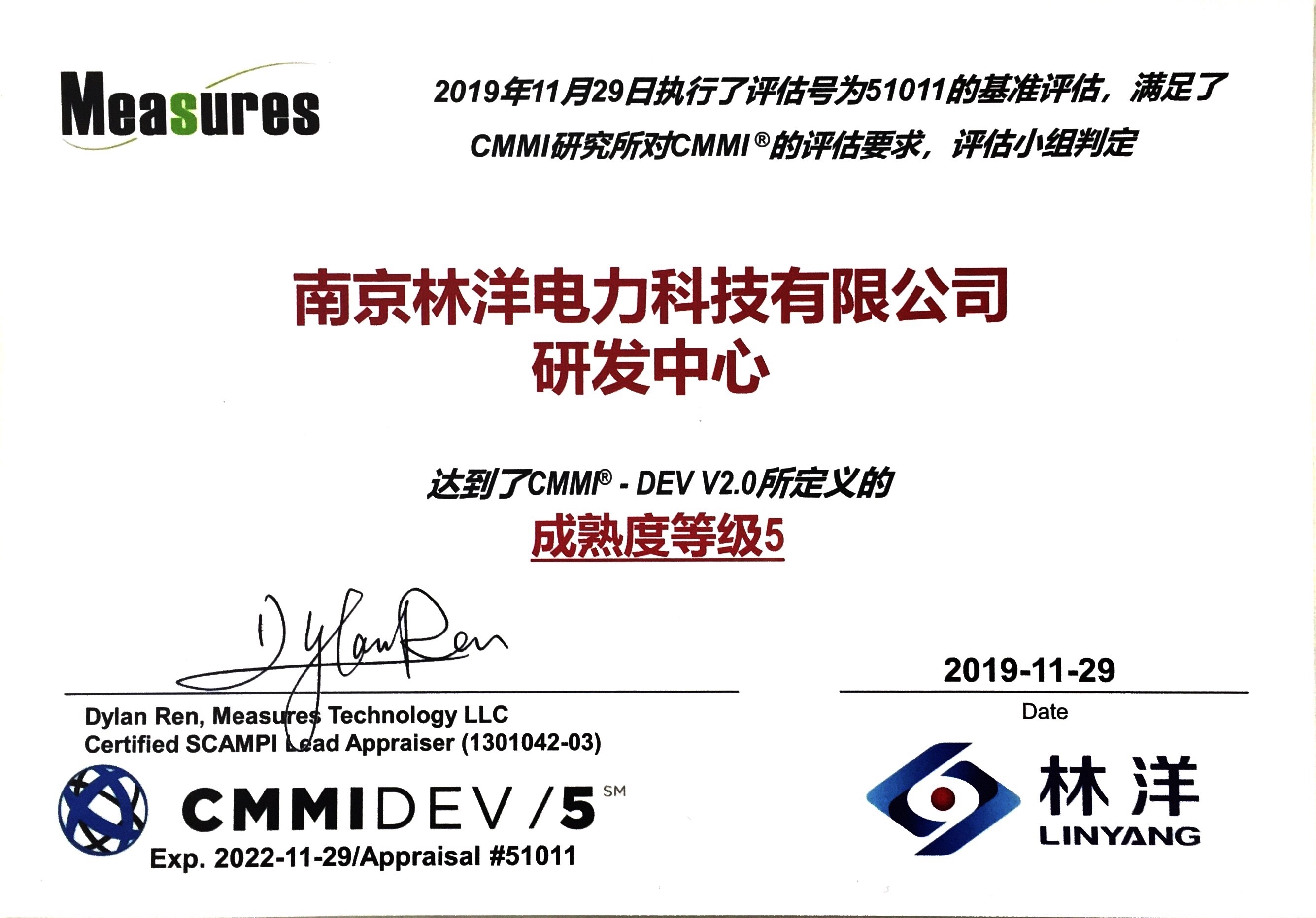 (南京林洋)(2019)CMMI 5級證書(中文)20191129-20221129