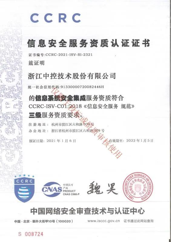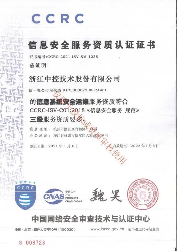 由中國(guó)網(wǎng)絡(luò)安全審查技術(shù)與認(rèn)證中心發(fā)證。