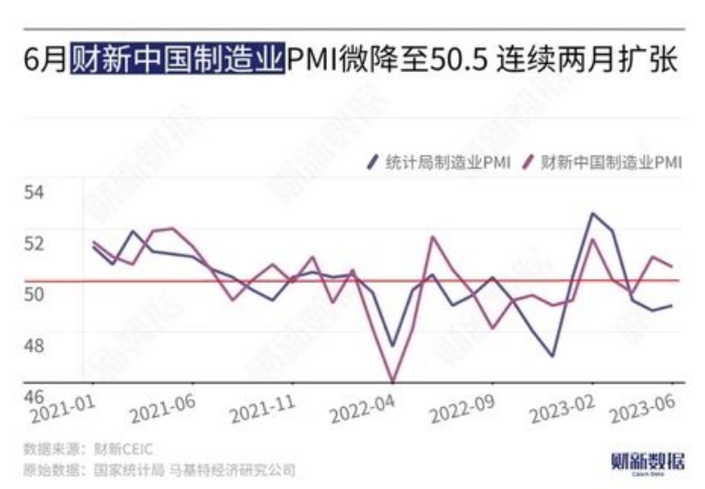 7月3日公布的6月財新中國制造業采購經理指數(PMI)錄得50.5,較5月小幅下降0.4個百分點,連續兩個月位于擴張區間。