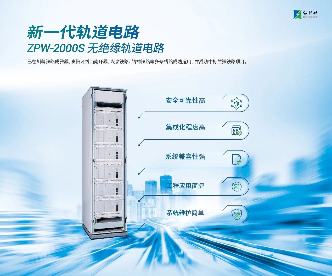 ZPW-2000S型無絕緣軌道電路設備具有安全可靠性高、集成度高、工程應用簡捷、兼容性強、易于維護等特點。產品通過國家鐵路局行政許可,獲得SIL4級安全認證、CRCC認證,取得多項國家發明專利,榮獲中國交通運輸協會科學技術一等獎,并在成雅線、貴陽環線西南環段、靖神線、興泉線等多條線路成功運用。