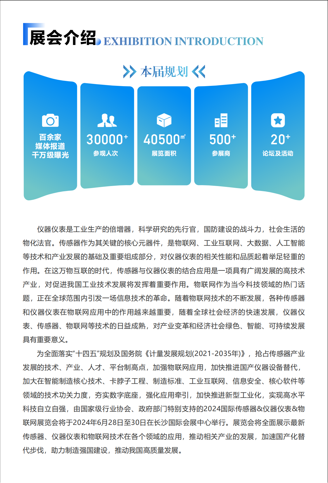 為全面落實“十四五”規(guī)劃及國務(wù)院《計量發(fā)展規(guī)劃(2021—2035年)》及深入貫徹習(xí)近平總書記關(guān)于新型工業(yè)化的重要指示和全國新型工業(yè)化推進(jìn)大會精神,夯實數(shù)字底座,強化應(yīng)用牽引,加快推進(jìn)新型工業(yè)化,首屆國際傳感器&儀器儀表&物聯(lián)網(wǎng)展覽會將于2024年6月在長沙舉辦。為了支持地方經(jīng)濟高質(zhì)量發(fā)展,我協(xié)會作為展會的特別支持單位,對該展會給予了高度關(guān)注。