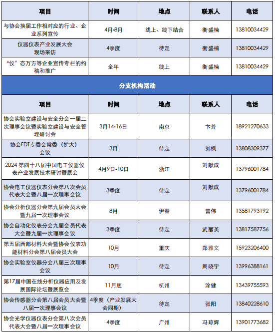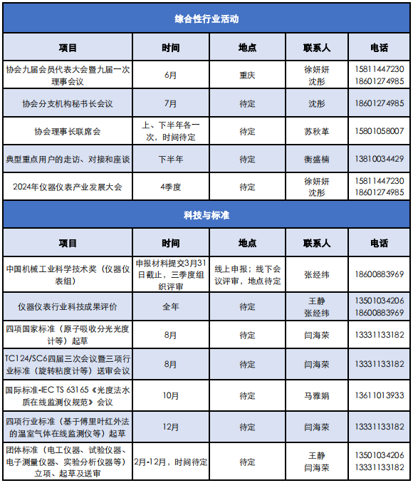 為發(fā)揮中國(guó)儀器儀表行業(yè)協(xié)會(huì)支撐政府、服務(wù)行業(yè)的橋梁作用,促進(jìn)行業(yè)間交流與合作,引導(dǎo)產(chǎn)業(yè)健康發(fā)展,推進(jìn)各項(xiàng)工作有序開展,更好地為協(xié)會(huì)會(huì)員企業(yè)服務(wù),特將中國(guó)儀器儀表行業(yè)協(xié)會(huì)2024年主要工作計(jì)劃整理如下,供大家了解和參與。