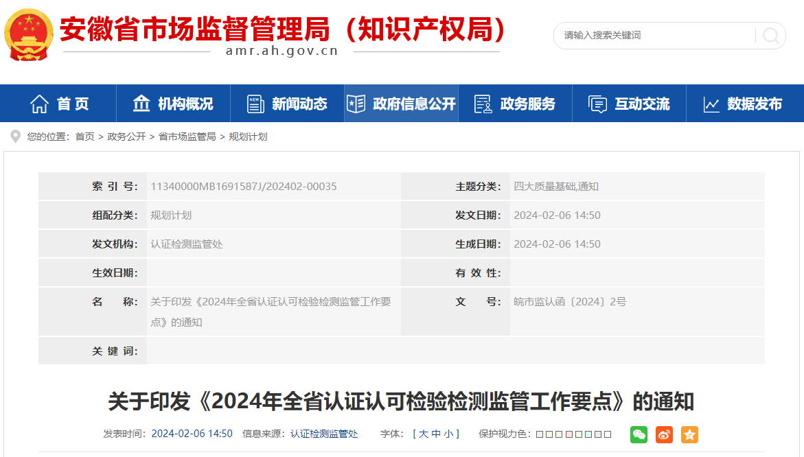 近日,安徽省市場監(jiān)管局印發(fā)《2024年全省認證認可檢驗檢測監(jiān)管工作要點》,提出鼓勵國內(nèi)、國際知名認證機構(gòu)在皖設(shè)立子公司或者辦事處。全文如下: