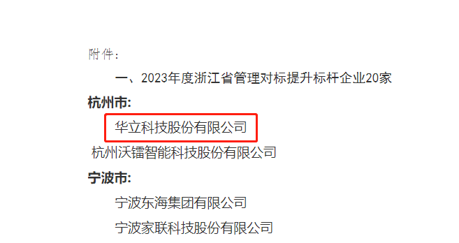 近日,浙江省經(jīng)信廳公布了“2023年度浙江省管理對標(biāo)提升標(biāo)桿企業(yè)名單”,全省共有20家企業(yè)入選。其中,華立科技成功躋身杭州市兩家入選企業(yè)之一,獲評“2023年度浙江省管理對標(biāo)提升標(biāo)桿企業(yè)“稱號。
