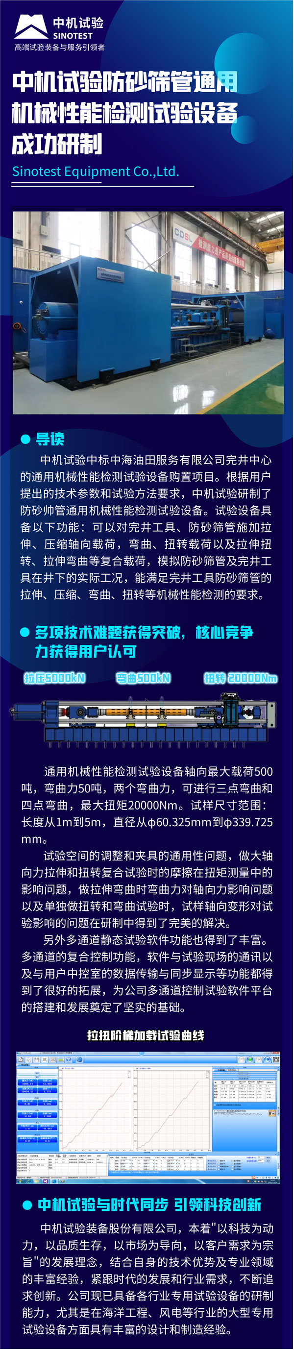 中機試驗防砂篩管通用機械性能檢測試驗設備成功研制