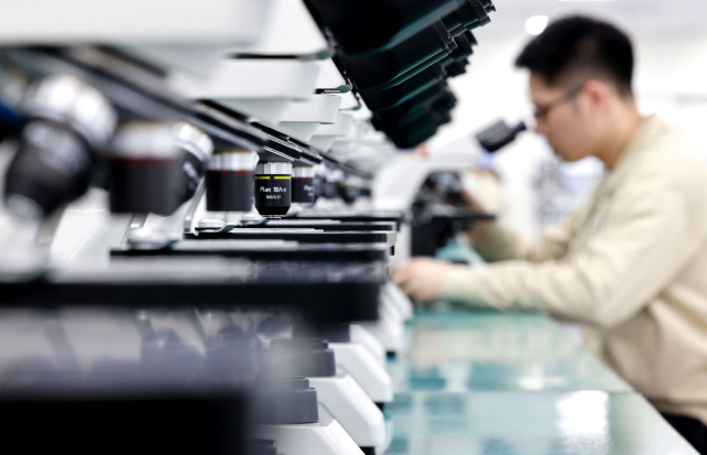 “我們公司牽頭‘十四五’國(guó)家重大項(xiàng)目的科研成果NSR950,‘學(xué)名’叫全光譜高分辨率活細(xì)胞激光共聚焦顯微鏡。它突破了百納米超分辨顯微系統(tǒng)制造技術(shù),分辨率相當(dāng)于人眼極限的1100多倍。”永新光學(xué)總經(jīng)理毛磊說(shuō)。