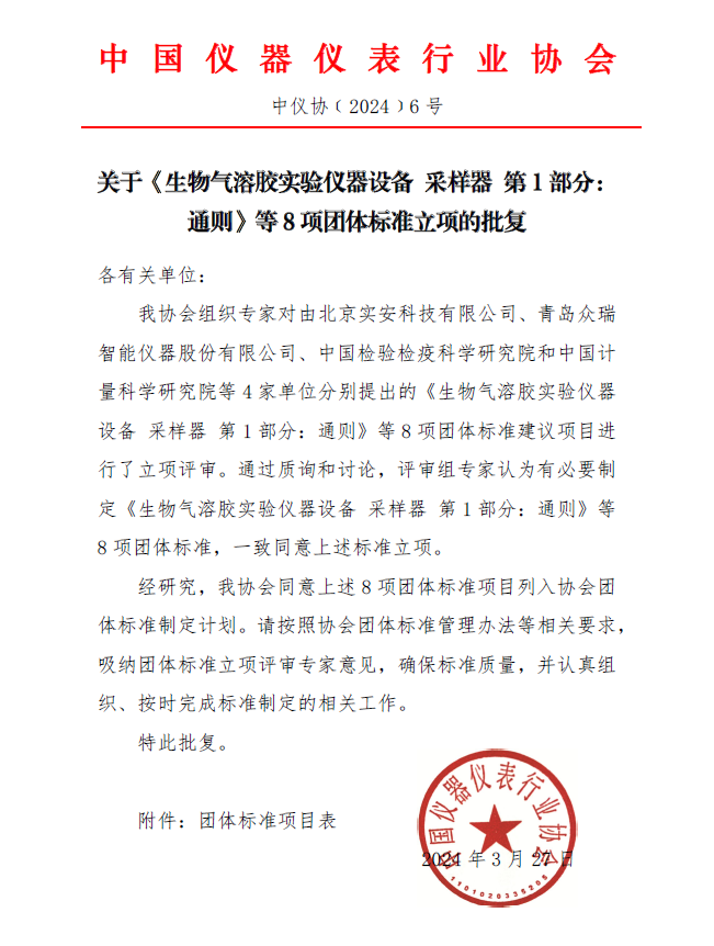 我協(xié)會(huì)組織專家對(duì)由北京實(shí)安科技有限公司、青島眾瑞智能儀器股份有限公司、中國檢驗(yàn)檢疫科學(xué)研究院和中國計(jì)量科學(xué)研究院等4家單位分別提出的《生物氣溶膠實(shí)驗(yàn)儀器設(shè)備 采樣器 第1部分:通則》等8項(xiàng)團(tuán)體標(biāo)準(zhǔn)建議項(xiàng)目進(jìn)行了立項(xiàng)評(píng)審。通過質(zhì)詢和討論,評(píng)審組專家認(rèn)為有必要制定《生物氣溶膠實(shí)驗(yàn)儀器設(shè)備 采樣器 第1部分:通則》等8項(xiàng)團(tuán)體標(biāo)準(zhǔn),一致同意上述標(biāo)準(zhǔn)立項(xiàng)。