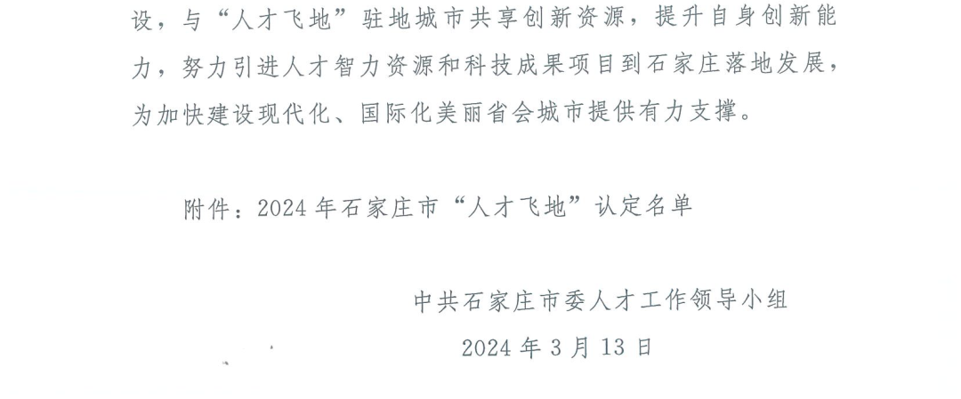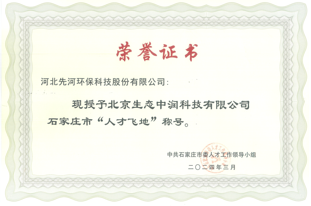 近日,中共石家莊市委人才工作領(lǐng)導(dǎo)小組對2024年度石家莊市“人才飛地”認(rèn)定結(jié)果進(jìn)行通報(bào),北京生態(tài)中潤科技有限公司作為先河環(huán)保北京研發(fā)中心載體,正式被認(rèn)定為石家莊市“人才飛地”稱號。