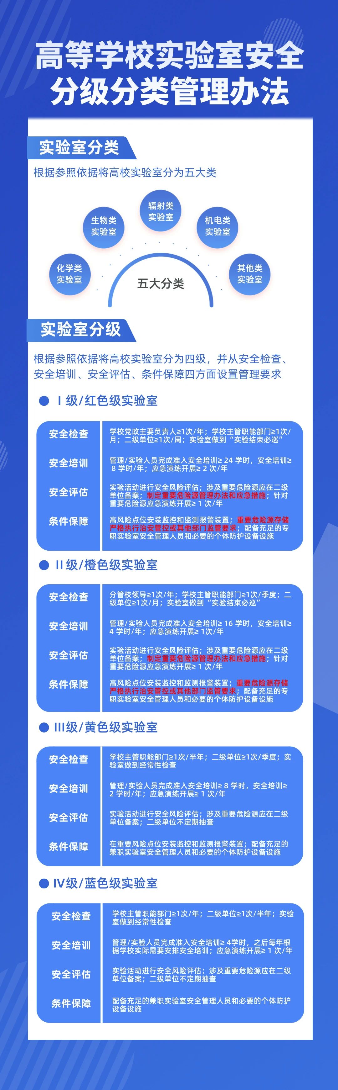 近日,教育部印發《高等學校實驗室安全分級分類管理辦法(試行)》,對高校實驗室安全分級分類管理的責任體系、工作原則、管理要求等作出相關規定。