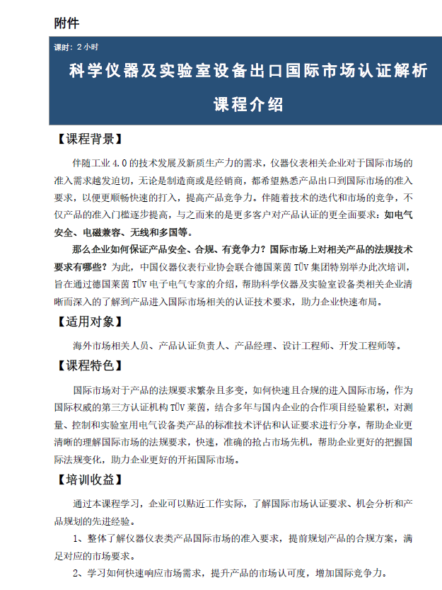 附件:科學(xué)儀器及實驗室設(shè)備出口國際市場認(rèn)證解析課程介紹