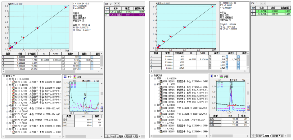 因為血液、尿液基體非常復雜,受基體的干擾,無法采用液液萃取、吹掃捕集等常規前處理方法,而頂空進樣法靈敏度較低,不能滿足ng/L級別濃度范圍的分析需求;使用HSTD多功能進樣器的動態頂空功能,即保留了頂空法不受樣品基體干擾的優點,又可以大幅度提高檢測靈敏度,且保持較好的色譜峰型,可滿足血液中ng/L級別揮發性有機物的分析需求。