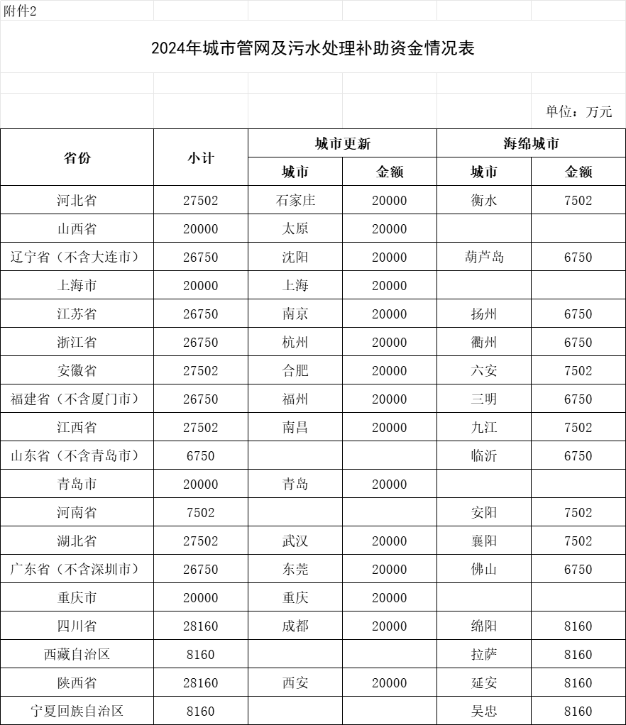2.2024年城市管網及污水處理補助資金情況表
