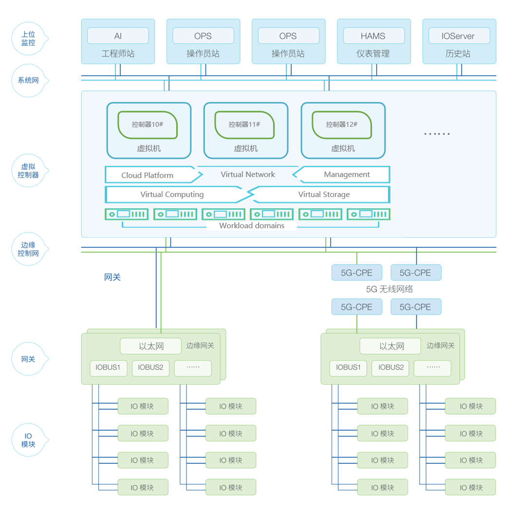 和利時HiaVDCS V1.0虛擬化控制系統可在保障控制系統安全、可靠和性能的前提下,將實體控制器虛擬化,為用戶提供一套可運行于通用計算機資源的軟件化智能控制器及高效冗余工業以太網通信系統,并具有5G便捷接入能力。它不僅具備實體DCS控制系統的所有功能,更具有虛擬控制器算力的彈性擴展能力,可為基于機器學習、大數據尋優、智能控制等技術的智能應用算法落地提供一體化閉環控制運行環境。