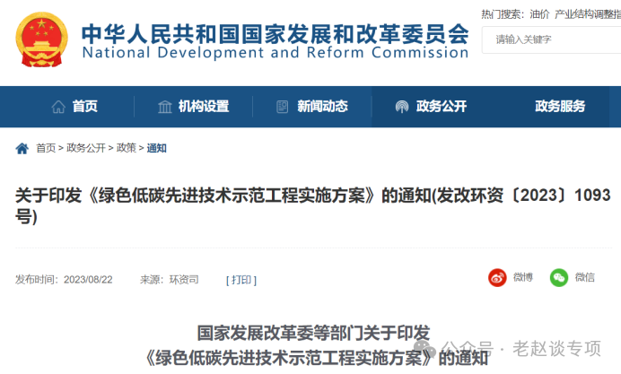 2023年8月4日國家發展改革委等10部門制定了《綠色低碳先進技術示范工程實施方案》,工程實施方案中項目方向分為“源頭減碳”、“過程降碳”、“末端固碳”,下面分別舉例。