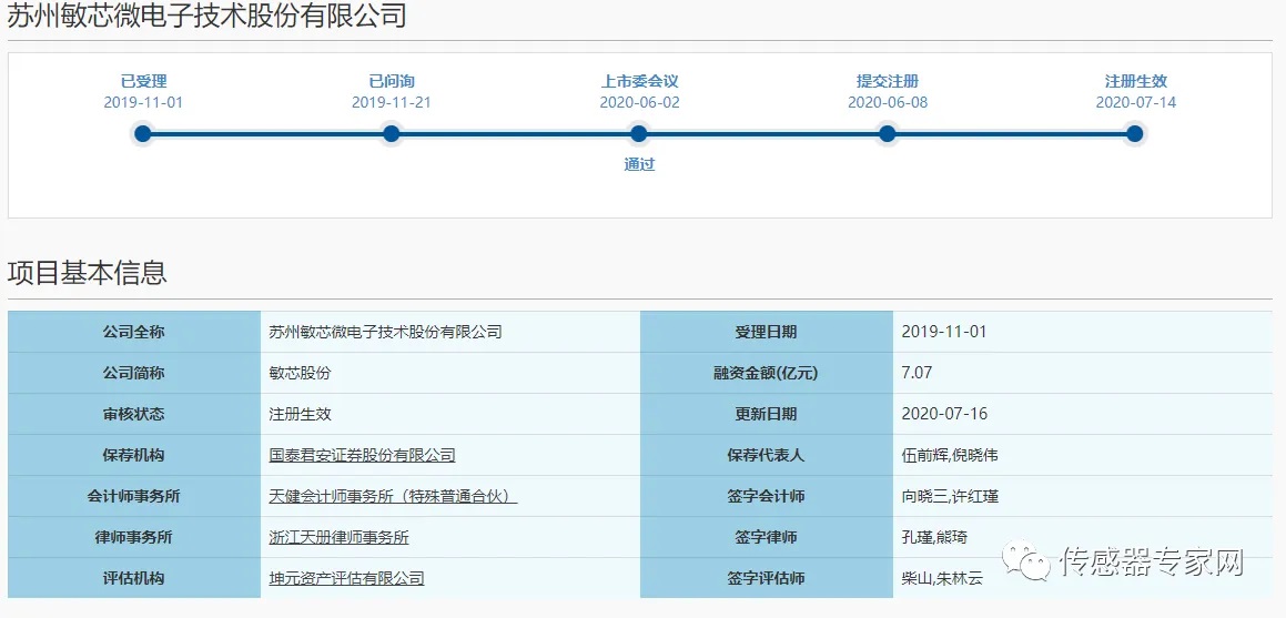 當時,正值敏芯股份上市關鍵時期。據上海證券交易所顯示,敏芯股份于201911月提交IPO申請,并于20207月注冊生效。