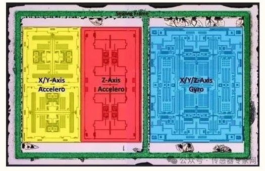 ▲InvenSenseTDK)的九軸慣性測量單元內部:陀螺儀 ()和加速度計()