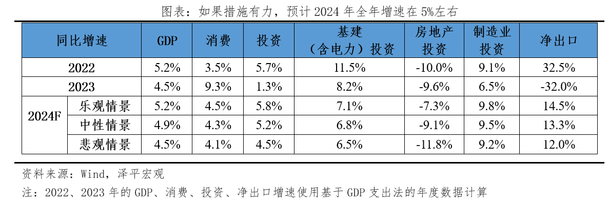 3.2  分情形測算:如果措施有力,預計2024年全年增速在5%左右