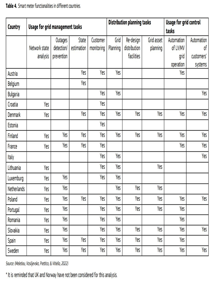 • 客戶監控:為客戶創造消費行為(38 DSO)。總體而言,56 DSO 中有 41 個使用智能電表執行電網管理任務。56 DSO 中有 18 個用于電網控制任務的儀表。電網控制任務可以帶來好處,例如低壓/中壓電網的自動化和/或客戶系統的自動化,包括促進客戶參與需求響應計劃。56 DSO 中有 29 個總體上使用配電計劃任務的儀表。通過智能電表,可以更好地規劃配電網,同時更好地做出投資決策。