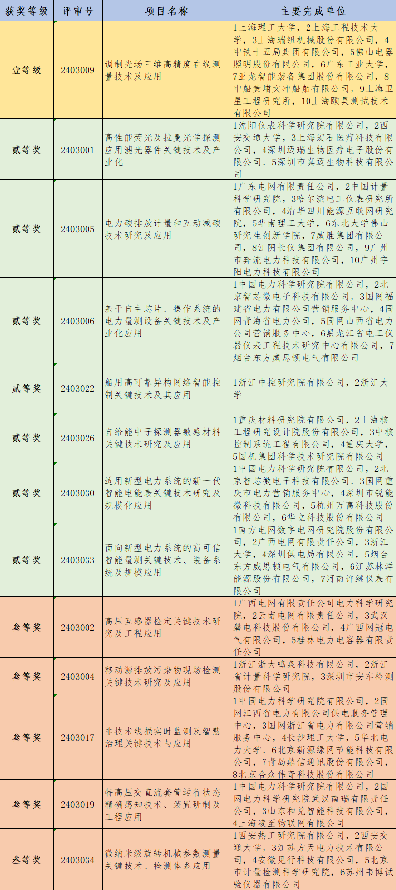 近日,機械工業(yè)科學(xué)技術(shù)獎勵辦公室發(fā)布了2024年度“機械工業(yè)科學(xué)技術(shù)獎”擬授獎項目公示。共評出擬授獎項目435項,其中技術(shù)發(fā)明獎34項(特等獎1項、一等獎12項、二等獎17項、三等獎4項)、科技進步獎401項(特等獎4項、一等獎28項、二等獎184項、三等獎185項)。其中儀器儀表組共獲得:技術(shù)發(fā)明類壹等級1項、貳等獎2項;科技進步類壹等級1項、貳等獎7項,叁等獎5項。