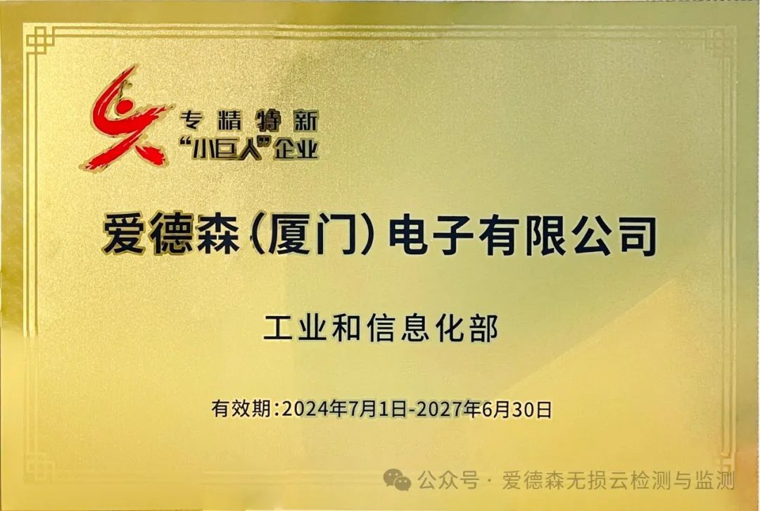 2024年9月3日,工業和信息化部揭曉了第六批國家級專精特新“小巨人”企業榜單,共計3012家企業脫穎而出。愛德森(廈門)電子有限公司榮耀登榜,成為廈門市18家入選企業之一。此番榮膺國家級專精特新“小巨人”稱號,標志著愛德森公司在國家、省、市三級科技型中小企業評定中圓滿實現“大滿貫”壯舉。