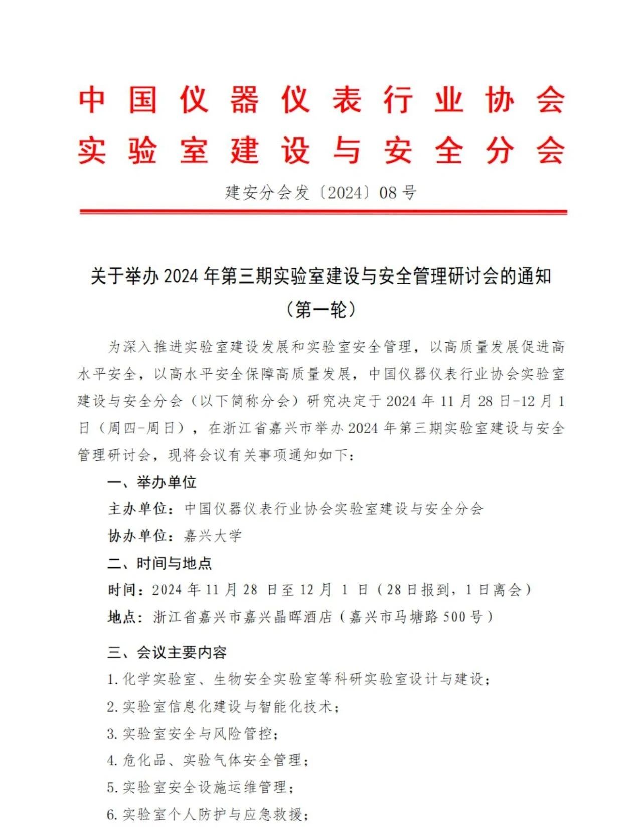 關(guān)于舉辦2024年第三期實驗室建設(shè)與安全管理研討會