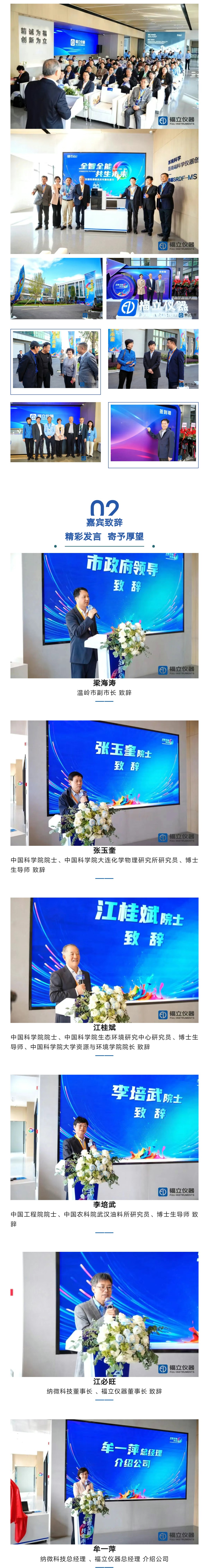 溫嶺市副市長梁海濤,中國科學院院士、中國科學院大連化學物理研究所研究員、博士生導師張玉奎,中國科學院院士、中國科學院生態環境研究中心研究員、博士生導師、中國科學院大學資源與環境學院院長江桂斌,中國工程院院士、中國農科院武漢油料所研究員、博士生導師李培武,納微科技董事長 、福立儀器董事長江必旺博士,納微科技總經理、福立儀器總經理牟一萍,福立儀器創始人黃立財先生,科學技術部科技經費監管服務中心原主任吳學梯,中國儀器儀表行業協會秘書長李躍光,清華大學教授、北京理化分析中心主任張新榮,北京大學教授劉虎威,中國色譜協會理事長許國旺,中國色譜協會秘書長張麗華,中國分析測試協會副理事長劉成雁等近百位專家領導及客戶嘉賓受邀出席本次活動。
