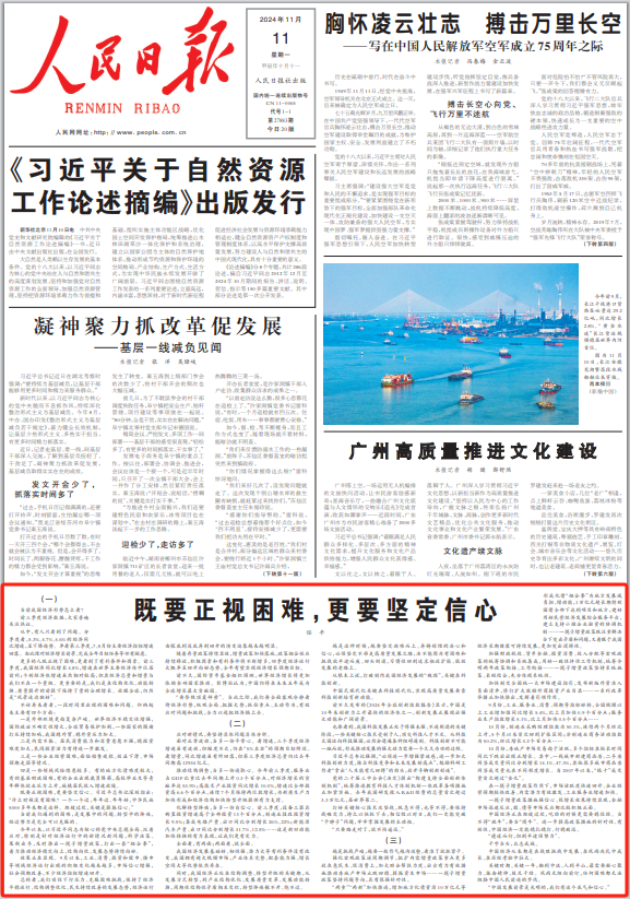當(dāng)前我們遇到的困難,是發(fā)展中的問(wèn)題、轉(zhuǎn)型中的陣痛,經(jīng)過(guò)努力是完全可以克服的。