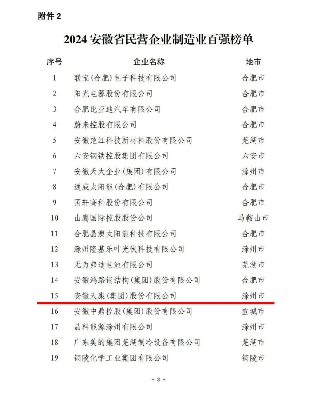 2024安徽省民營企業百強榜單發布,安徽天康集團榮