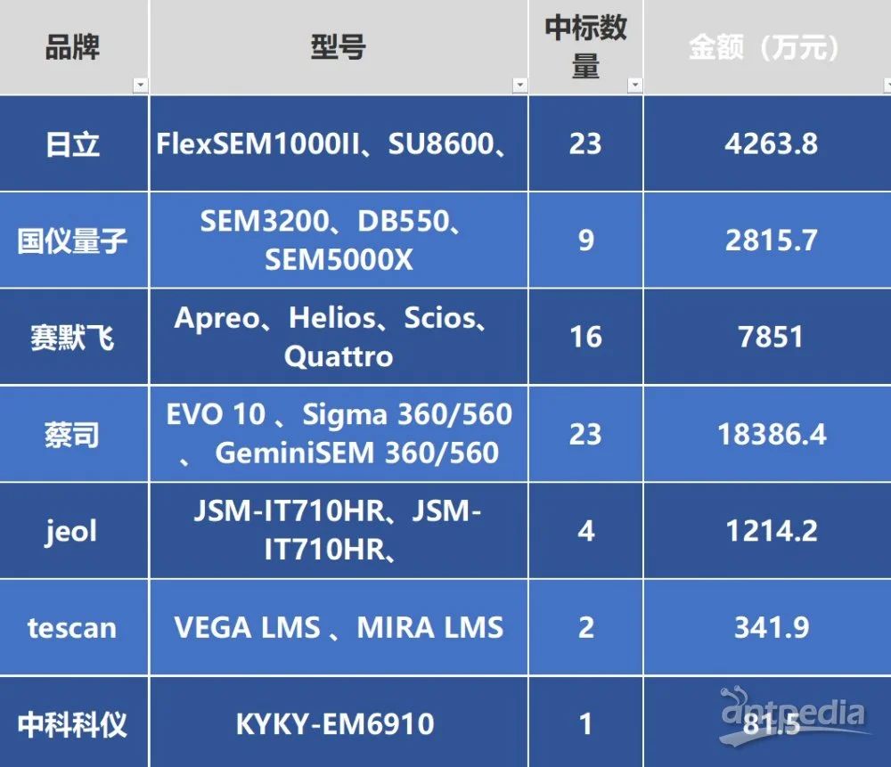 表1. 2024年度 掃描電子顯微鏡 中標(biāo)廠商統(tǒng)計表