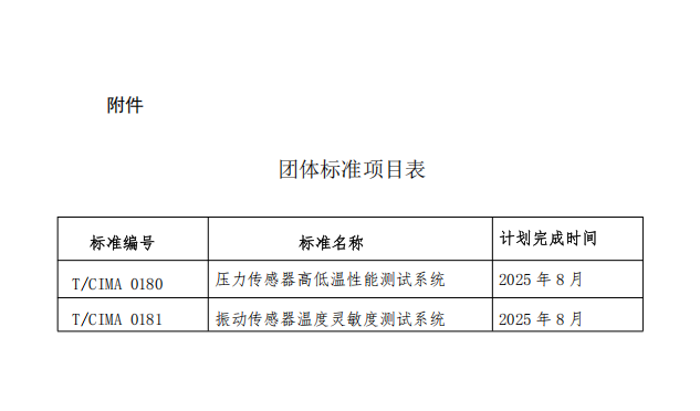 根據(jù)《中國(guó)儀器儀表行業(yè)協(xié)會(huì)團(tuán)體標(biāo)準(zhǔn)管理辦法》的規(guī)定,經(jīng)審查,對(duì)由中國(guó)航空工業(yè)集團(tuán)公司北京長(zhǎng)城計(jì)量測(cè)試技術(shù)研究所(簡(jiǎn)稱(chēng)“304所”)提出的《壓力傳感器高低溫性能測(cè)試系統(tǒng)》 《振動(dòng)傳感器高低溫性能測(cè)試系統(tǒng)》2項(xiàng)團(tuán)體標(biāo)準(zhǔn)進(jìn)行立項(xiàng)(標(biāo)準(zhǔn)編號(hào)和標(biāo)準(zhǔn)名稱(chēng)見(jiàn)公告附件),特此公告。