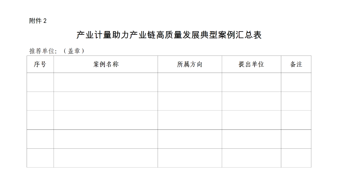 請各推薦單位于2025年3月31日前將正式推薦函、《產(chǎn)業(yè)計(jì)量助力產(chǎn)業(yè)鏈高質(zhì)量發(fā)展典型案例匯總表》(見附件2)報(bào)送科技司(技術(shù)基礎(chǔ)處),典型案例資料以電子郵件形式發(fā)送至huangxy@cesi.com。