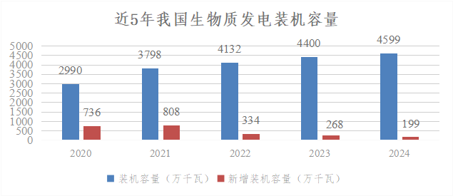 截至2024年末,我國生物質發電裝機容量達到4599萬千瓦,其中2024年新增裝機185萬千瓦,同比增長4%,連續6年位居世界第一。全年生物質累計發電量2083億千瓦時,同比增長5%。雖然我國生物質發電與其他幾類電力相比微不足道,但基于生物質的新生態能源系統正在建成,已初步形成了以發電為主,生物天然氣、清潔供暖等非燃料能源電能為輔的多元化發展格局。據權威機構研究數據顯示,我國生物質能開發潛力約4.6億噸標煤,目前實際轉化為能源的還不足0.6億噸標煤,發展潛力較大。