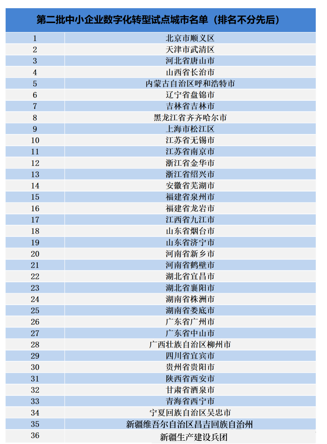 附中小企業數字化轉型城市試點前兩批名單如下: