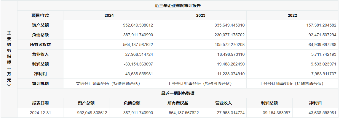 資產總額方面,2022年至2024年從15.74億元增長至95.2億元;負債總額從9.25億元增長至38.79億元;所有者權益從6.49億元增長至56.41億元。