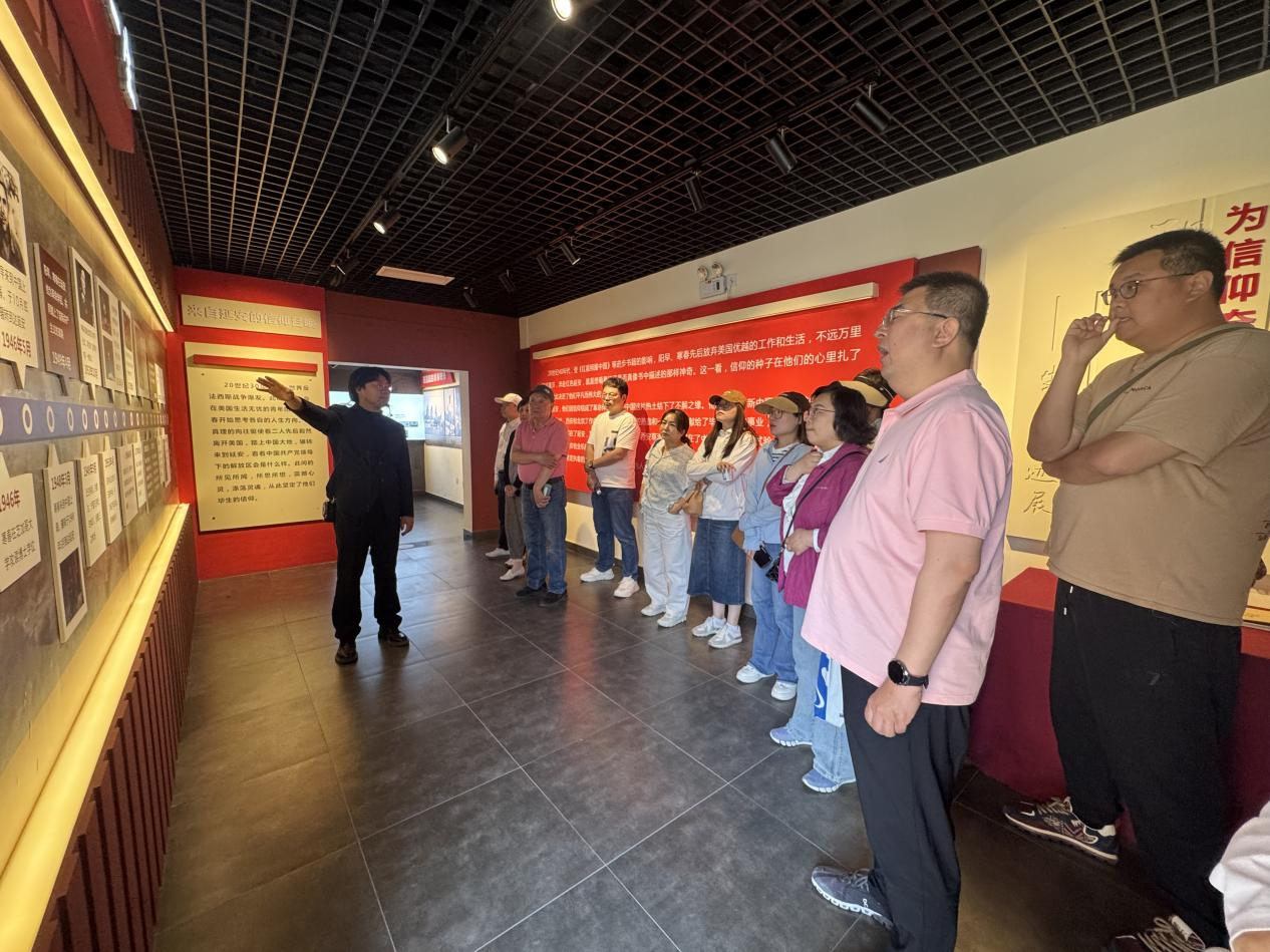 隨后,大家參觀了陽早、寒春夫婦的故居。故居完整保留了兩位老人生活原貌,包括日常起居的客廳、臥室、辦公區域以及助手辦公室和工具間。這些簡單樸素的陳設,無聲地訴說著他們生活的點滴,蘊含著高尚情操,生動體現了他們艱苦樸素的生活作風和無私奉獻的革命精神。置身其中,大家仿佛穿越時光,切身感受到他們平凡而偉大的一生,對黨的艱苦奮斗,無私奉獻精神有了更為深刻和直觀的理解。