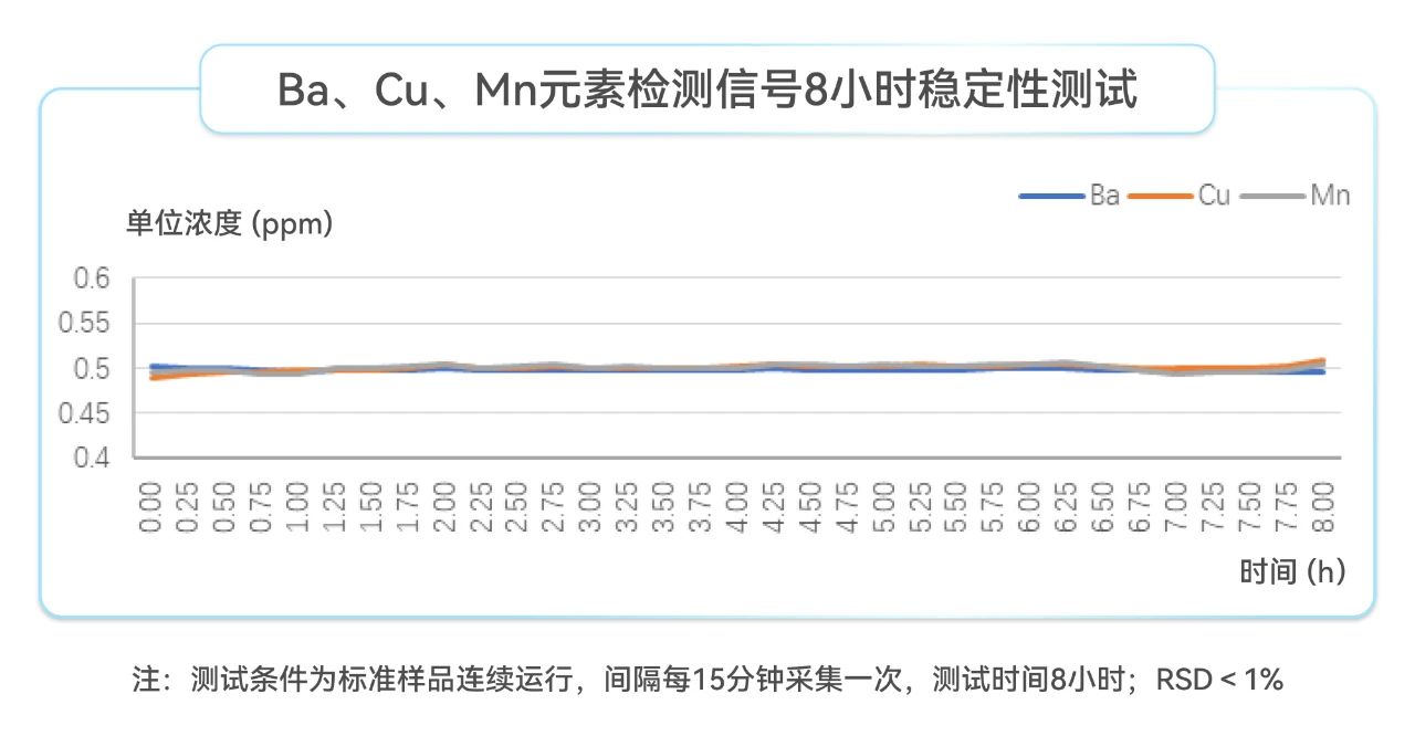 Ba、CuMn元素檢測信號8小時穩(wěn)定性測試