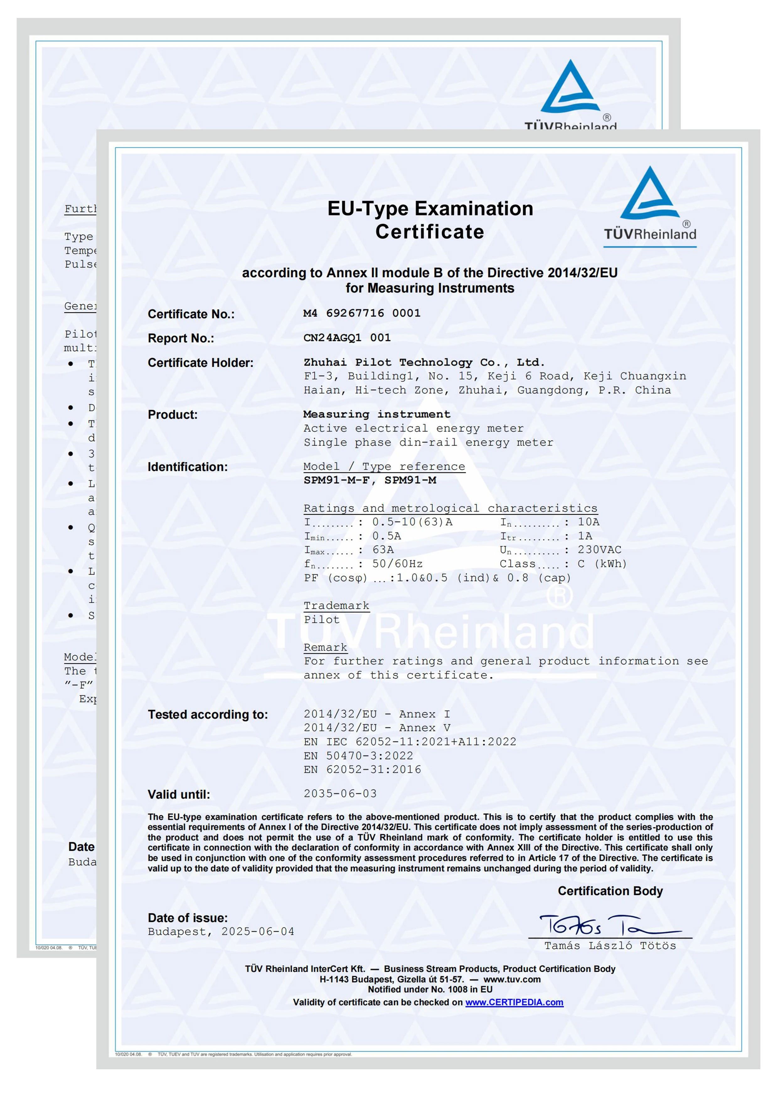 派諾科技SPM91單相多功能表獲得歐盟MID認證