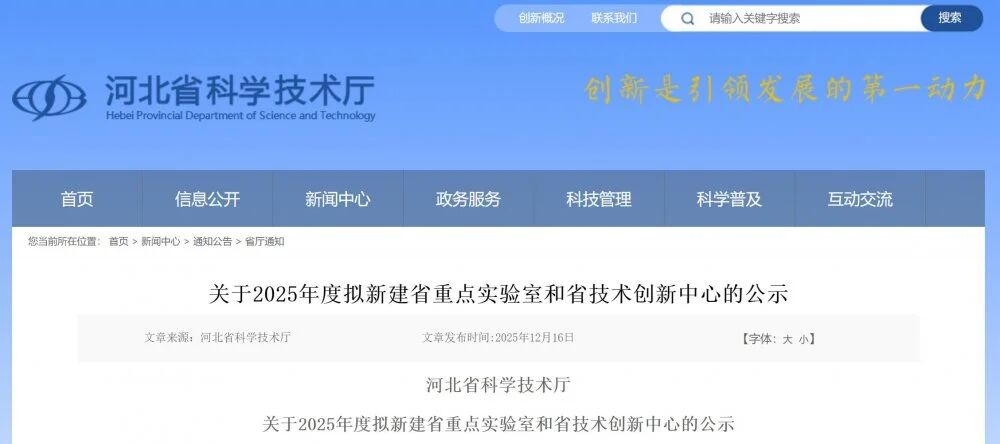 河北省科學(xué)技術(shù)廳關(guān)于2025年度擬新建省重點實驗室和省技術(shù)創(chuàng)新中心的公示