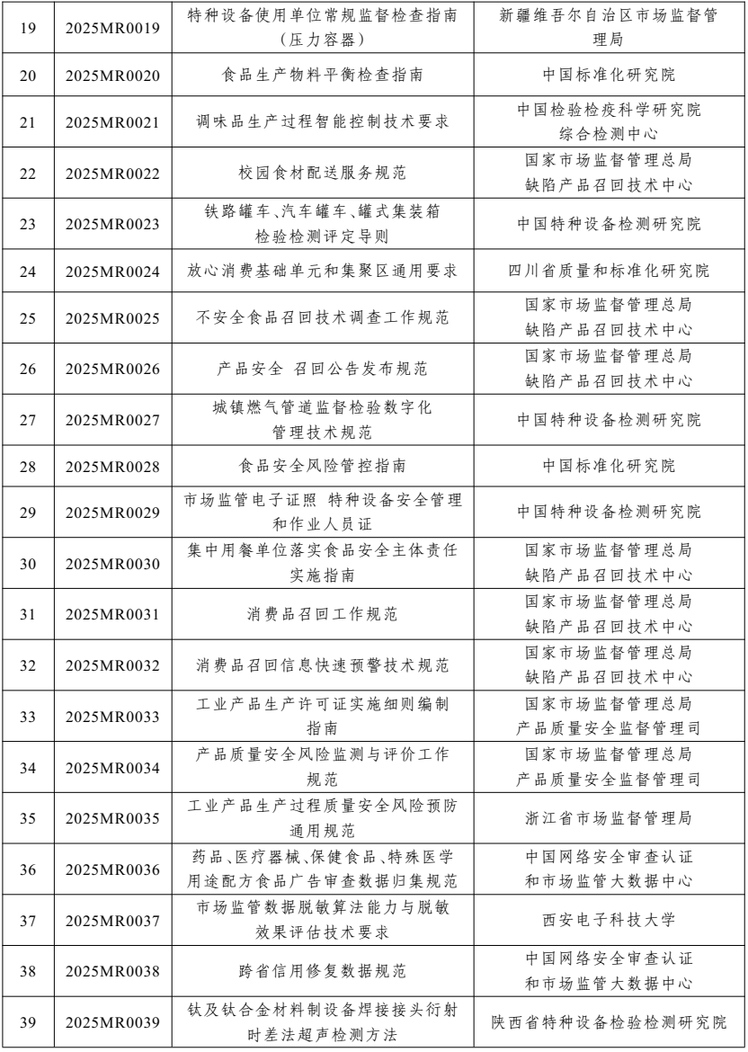 2025年度市場監(jiān)管行業(yè)標(biāo)準(zhǔn)制修訂項(xiàng)目計(jì)劃