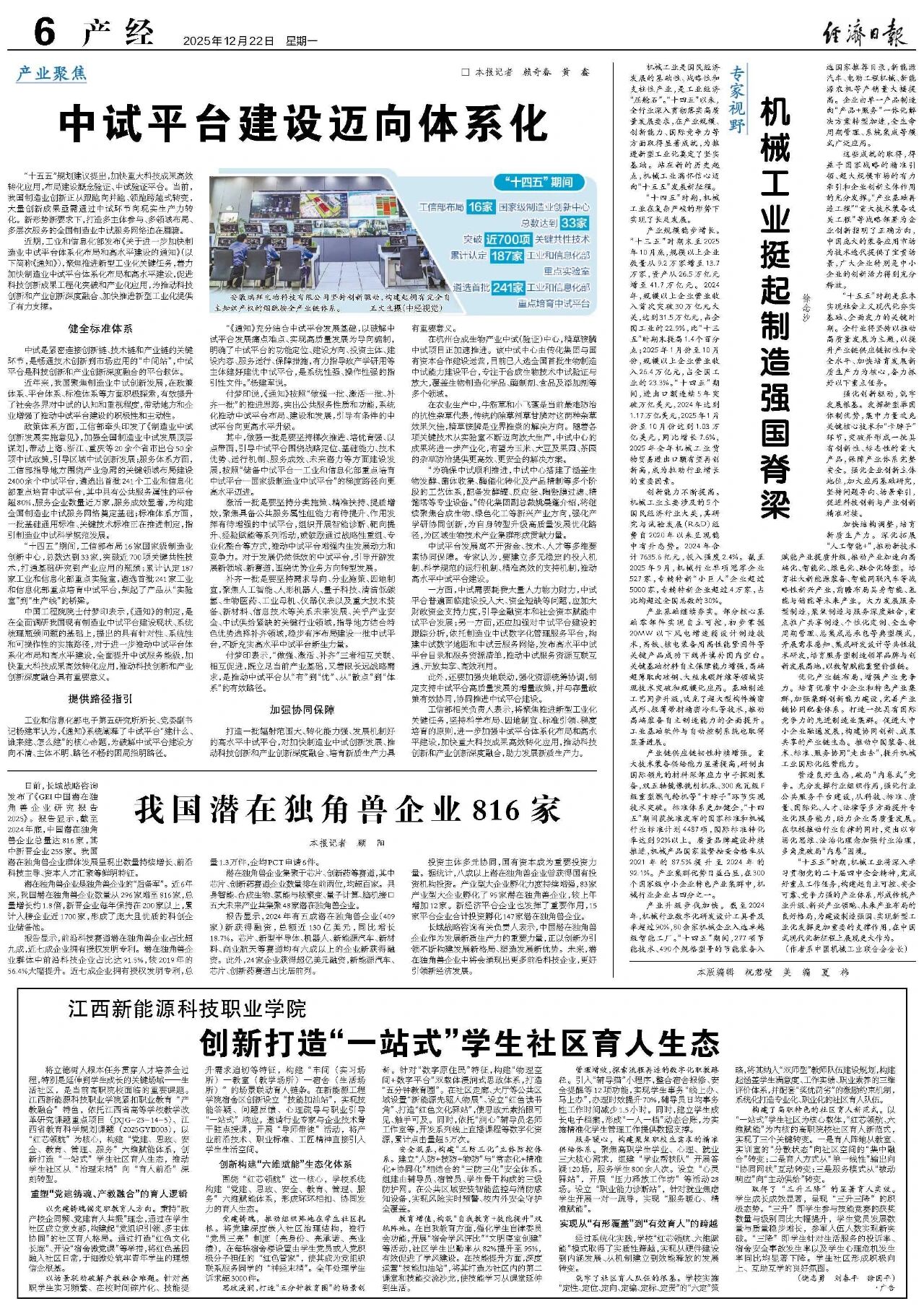 1222日,《經濟日報》刊發中國機械工業聯合會黨委書記、會長徐念沙署名文章《機械工業挺起制造強國脊梁》。全文如下: