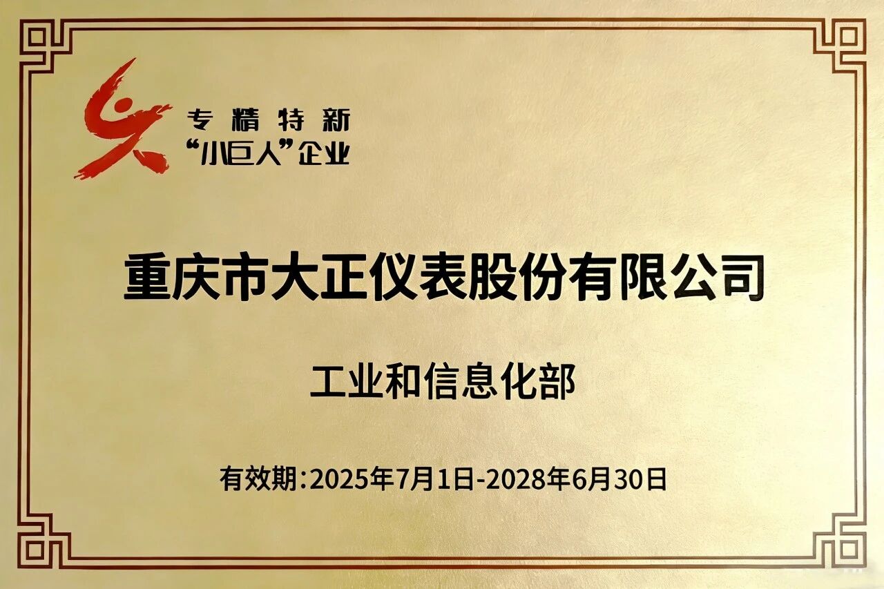 在公司成立30周年之際,大正儀表成功入選國家第七批專精特新“小巨人”企業名單。這一國家級榮譽的獲得,標志著公司在專業化、精細化、特色化、新穎化的發展道路上取得了里程碑式的成就。