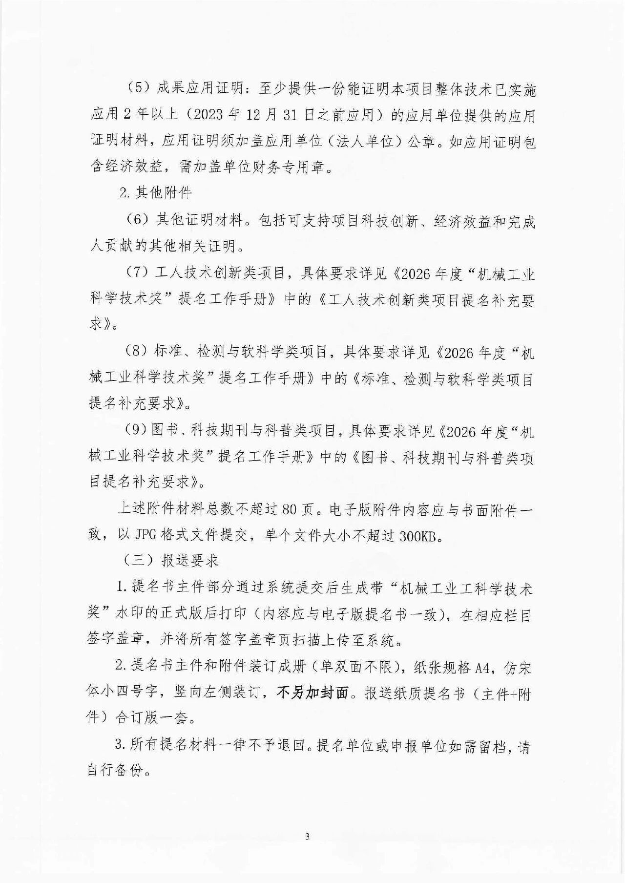 關(guān)于開展2026年度“機械工業(yè)科學技術(shù)獎”提名工作
