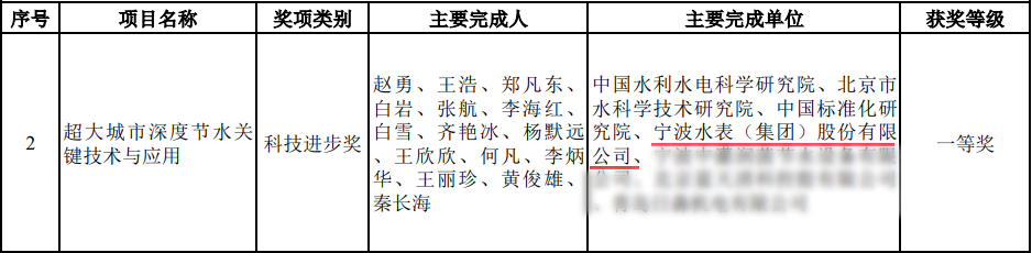 近日,2025年度大禹水利科學(xué)技術(shù)獎(jiǎng)評(píng)選結(jié)果正式揭曉,由寧波水表(集團(tuán))股份有限公司(以下簡(jiǎn)稱“寧水集團(tuán)”或“公司”)作為主要完成單位之一,攜手中國(guó)水利水電科學(xué)研究院、北京市水科學(xué)技術(shù)研究院、中國(guó)標(biāo)準(zhǔn)化研究院等7家單位共同完成的“超大城市深度節(jié)水關(guān)鍵技術(shù)與應(yīng)用”項(xiàng)目成果,憑借其卓越的創(chuàng)新性與顯著的應(yīng)用成效,榮獲科技進(jìn)步獎(jiǎng)一等獎(jiǎng)。