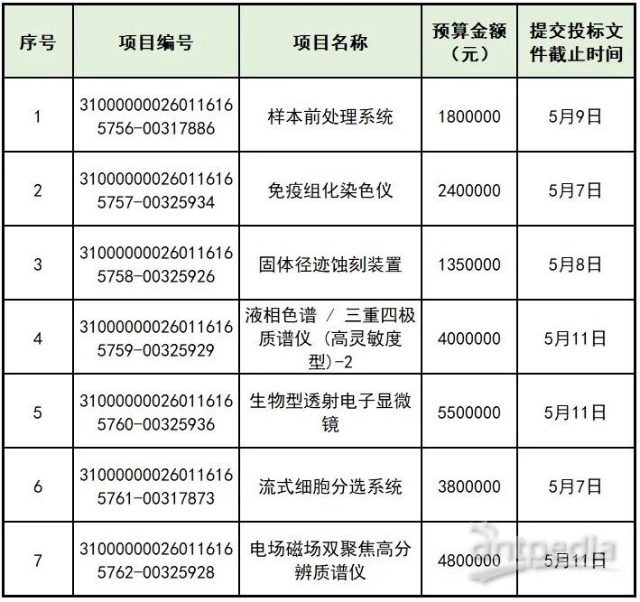 2365萬(wàn)元!上海市疾病預(yù)防控制中心計(jì)劃采購(gòu)多套儀